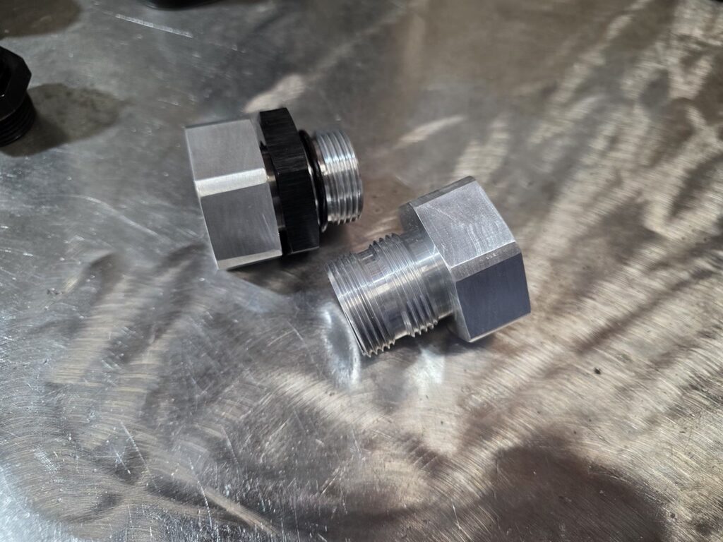 This is an aluminum -16AN flare female to 16AN ORB male fitting. This fitting was not available anywhere on the internet that I could find so I designed my own. You would typically use this on large fuel pump inlet or waterpump. Comes with jam nut and oring.