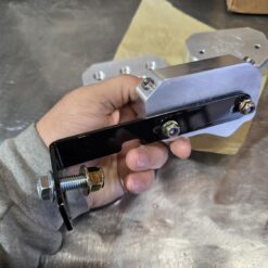 The powder coated mounting bracket is optional although highly recommended. It is installs in one of the holes the factory ABS unit occupied so no drilling or frame modification is required. Frame mounting bolt is an M10 and the bolts from the bracket to the block are 1/4″. Torque spec is nice and snug.
